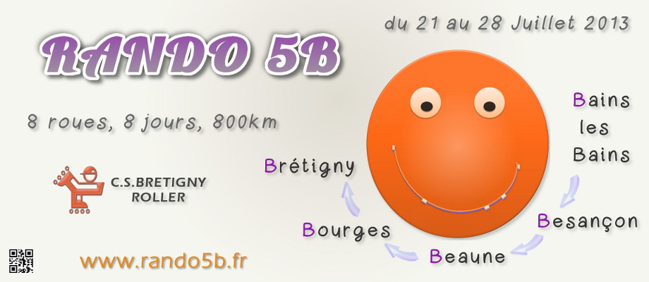 9 Patineurs de Brétigny prendront le départ de la « Rando 5B » le 21 juillet. Ils arriveront à Brétigny le 28 Juillet 2013.